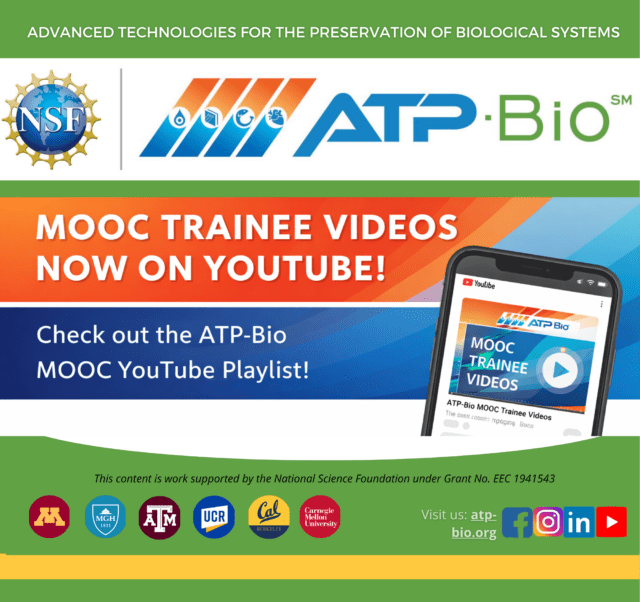 The NSF ERC for Advanced Technologies for the Preservation of Biological Systems (ATP-Bio) is a collaborative network of experts and engaged stakeholders working together to advance and ethically translate technologies for storage and distribution of living biological products. These technologies have broad applications in healthcare, bioconservation, and food supply and sustainability. The ERC provides a forum for both academia and industry, fostering creation and transfer of knowledge and transforming the research, application, and education of cryopreservation and biopreservation techniques.