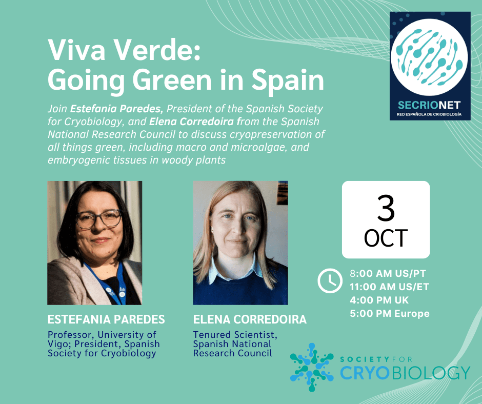 Join Estefania Paredes, President of the Spanish Society for Cryobiology, and Elena Corredoira from the Spanish National Research Council to discuss cryopreservation of all things green, including macro and microalgae, and embryogenic tissues in woody plants.